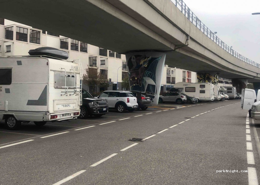 Seul endroit trouvé à Brescia pour passer ma nuit avec le camping car! Légèrement décentré mais on a bien dormi. Il y a d’autres camping car stationnés. Certains à l’année j’imagine comme en dépôt. Il y a de l’activité nocturne mais personne ne nous a embêté. Le problème en novembre c’est que les autres lieux type agritourismes qui accepetent les CC sont fermés. Depuis ici on peut visiter Brescia.