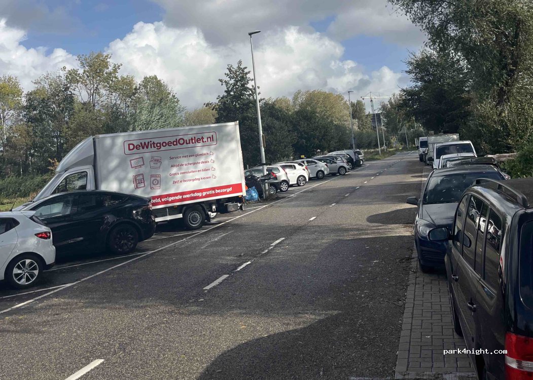 Perfect place for Amsterdam. We parked here to attend a wedding. When we arrived at 8 PM on a Saturday night, there was only one spot on the grass left. We took the bus to Amsterdam Zuid where you can get an OV bike. All very convenient and good accessible. We came back in the middle of the night. A bit dodgy as drugs dealers are sitting in their car waiting for assignments but yeah it’s Amsterdam