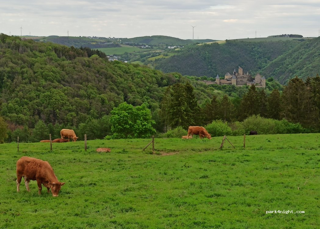 Aussichtsplatz auf die Burg Bourscheid. Stellplatz für Max. 2 Caravans.