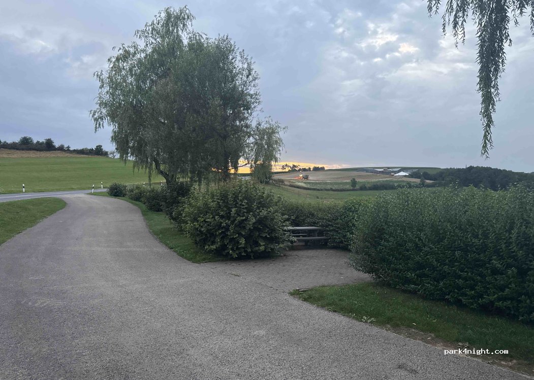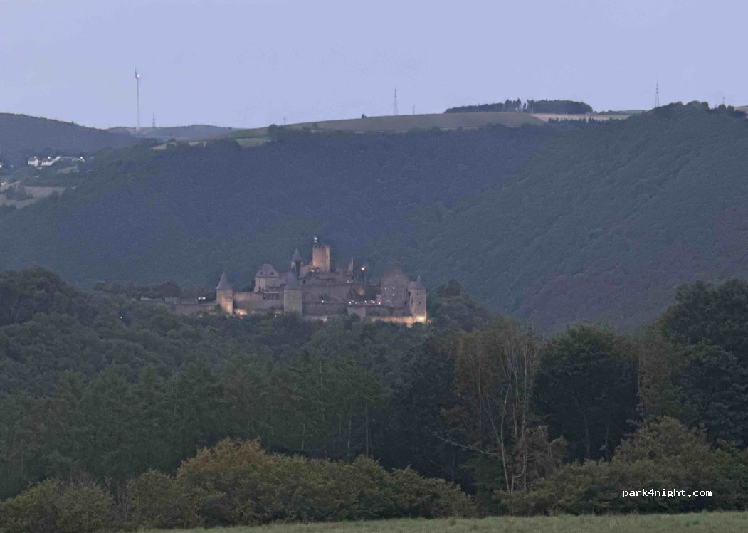 C’est un lieu très correct pour y dormir, j’y ai passé la nuit, superbe vue sur le château de Bourscheid (pratique pour le visiter le lendemain matin), seul petit inconvénient est la route juste à côté mais peu de voitures passent la nuit (ayant le sommeil lourd je n’ai rien entendu). 2 tables de picnics à l’abri du vent dans les bosquet permettent de manger à l’abri du vent et des regards.