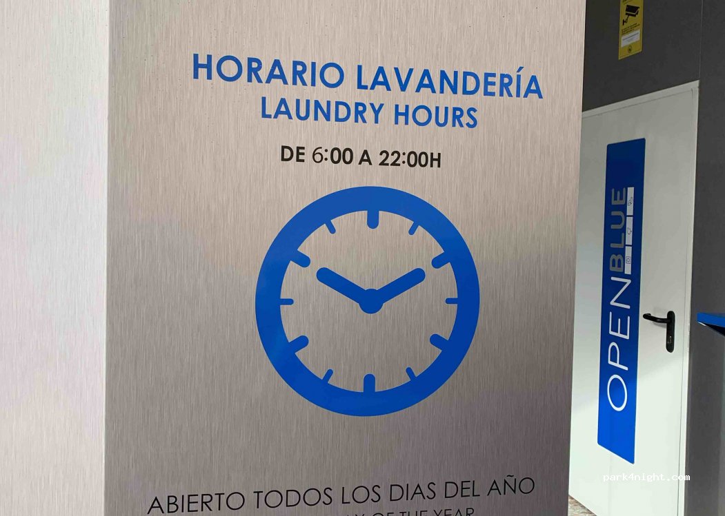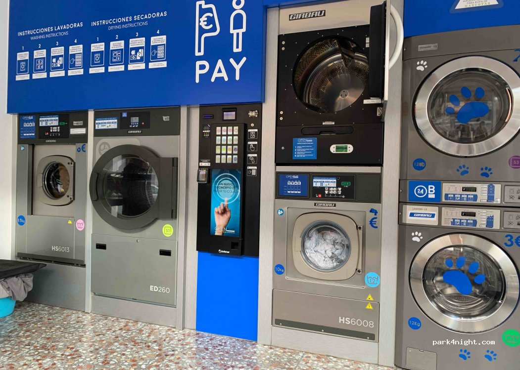 Launderette, bring your own detergent. Open from 6:00 a.m. to 10:00 p.m. WiFi free of charge.