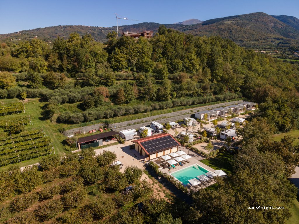 Omringd door olijfbomen, kersenbomen en wijnstokken in Marciaga di Costermano sul Garda, heeft de door een familie gerunde structuur 5 stacaravans en 10 exclusieve staanplaatsen met eigen badkamer. Diensten omvatten: een niet-zout gezuiverd zwembad, uitgerust zonneterras en camperservice. Het Farmhouse-Restaurant is geopend in 2014 en biedt typische gerechten uit de streek met echte km0-ingrediënten. In de Agri-Shop is het ook mogelijk om de producten van eigen productie te kopen: DOC-wijn, DOP extra vergine olijfolie en soortgelijke producten. Dieren zijn niet toegestaan.