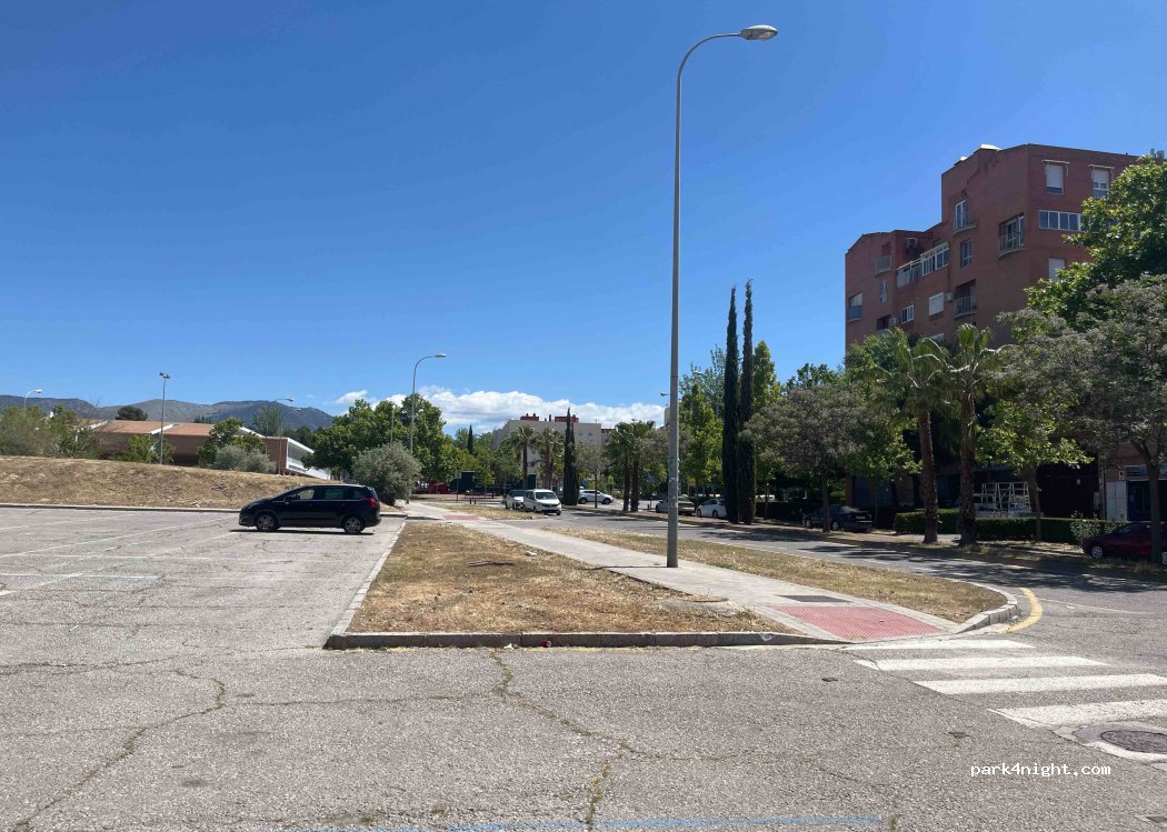 Emplacement goudronné et plat pour tout type de Camping car. quartier résidentiel calme à côté d’une esplanade vouée à d’éventuelles festivités ( présence de chapiteaux) donc peu s’avérer bruyantes lors de festivités. Nous y avons passé que la journée .A 300 m il y a le bus 33 qui vous amène au centre historique de Grenade.Comme tous les parkings il est jonché de détritus malgré des containers .