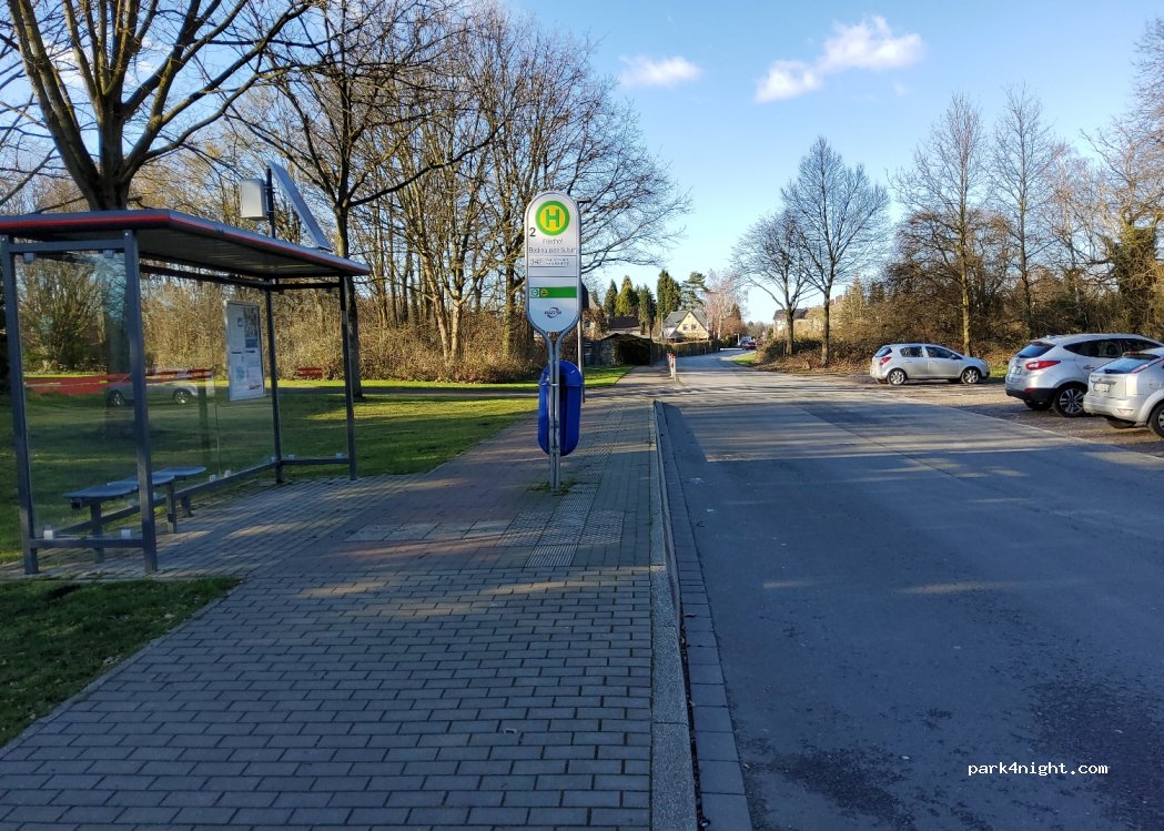 Parkplatz am Friedhof. Der Friedhof beherbergt das Schalke Feld, auf dem viele Legenden des Vereins liegen.