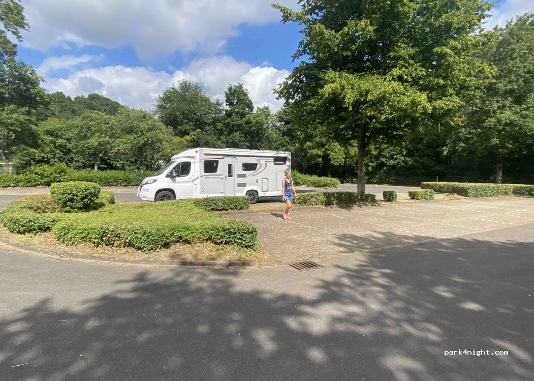 We arrived about 3pm and planned to use the outdoor pool but figured it was too cold even for us Scots. Nobody else stayed the night an it was very peaceful. The area has a slope but manageable. There are coin slot electric points but we never used them. Nobody came for payment but also there are no signs saying that it costs to park there. Recommend for one night if it’s on your route.