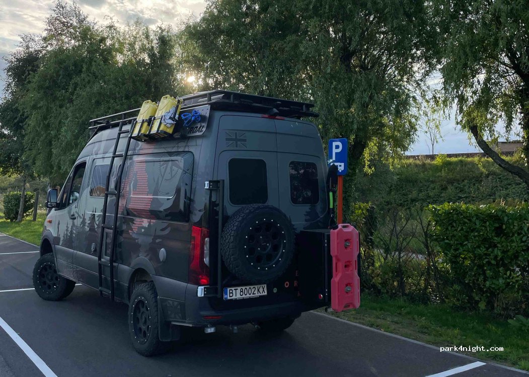 Awful. The parking area has been refurbished and is lovely. Don’t follow google; there’s a new entrance. The two motorhome spots are immediately adjacent to the train line which runs ALL NIGHT. Only the bike path separates you from the trains. Noisy as hell. Cars come and go all night too. And the station is next to a factory that also works all night. I’m here on a Thursday and am a sound sleeper but was woken up 6 times by trains.