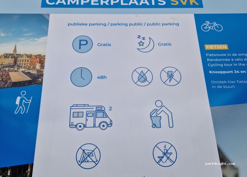 Mooi initiatief van de stad Sint-Niklaas maar de locatie is niet optimaal gekozen. Op het einde van een parking die niet echt een veilig gevoel geeft en vlak naast het spoor wat toch voor wat geluidshinder zorgt. Desalnietemin ideaal gelegen om de stad te bezoeken. 2€/24u