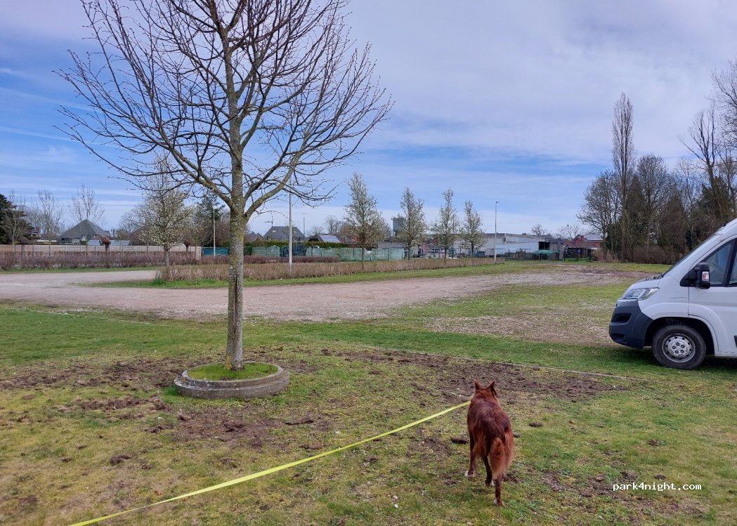 Parking aan het voetbalterrein. Zeer rustig geslapen, met een mooi uitzicht.