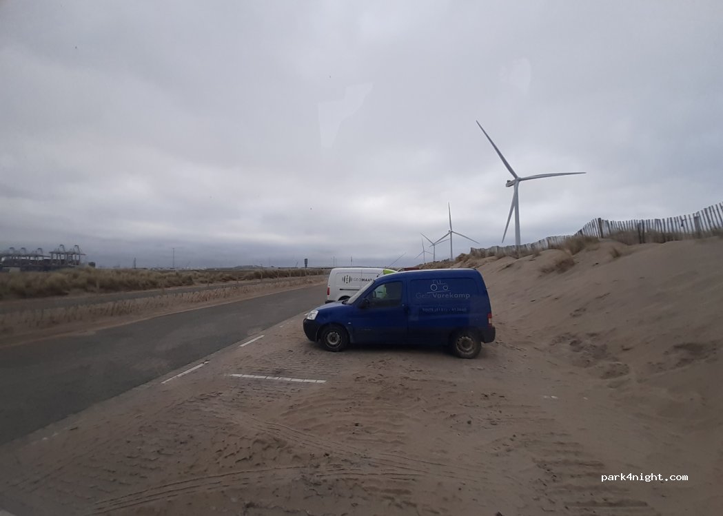 Kleine parkeerplaats op het duin met directe toegang tot het strand. Parkeerplaatsen die groot genoeg zijn voor kleinere stacaravans en bestelwagens onder de 7 meter. Houd rekening met de andere gasten.