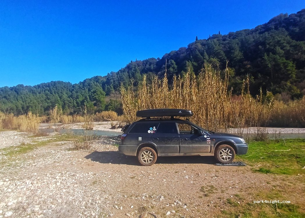 Très joli spot perdu dans les montagnes grecques avec même un peu de réseau. Le mieux est d'aller jusqu'au bord de la rivière un peu plus loin mais 4x4 avec pneus All-Terrain recommandé surtout lendemain de pluie comme nous car il y'a des bons bourbiers sur les 50 derniers mètres