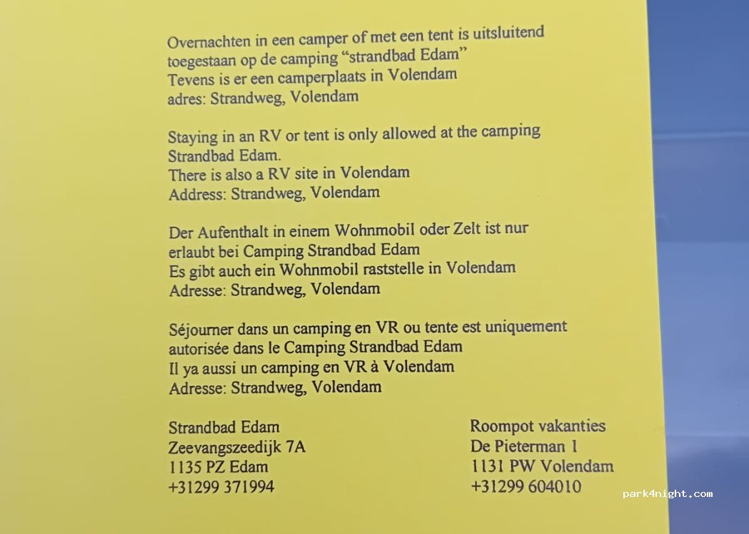 grande parcheggio gratuito,ottimo per visitare Volendam. Nessun servizio. Ci sono posti anche per camper di grandi dimensioni,il nostro è di 8,30 metri