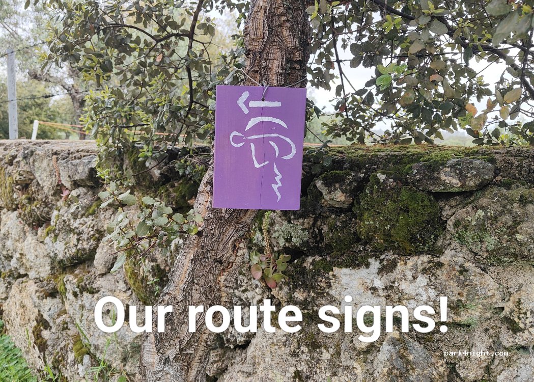 Our farm can be reached via three routes. These routes start at two locations and can be followed via purple signs with a cowgirl. If you would like to drive an extra wide route, start at: coordinates 39.9046620, -7.3552464. From here you can also drive a normal route.