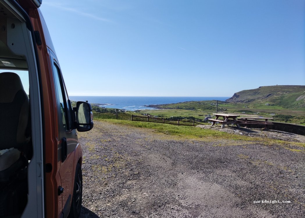 Parking du site surplombant Glenn Colombkile. Superbe vue sur la mer et sur le village.