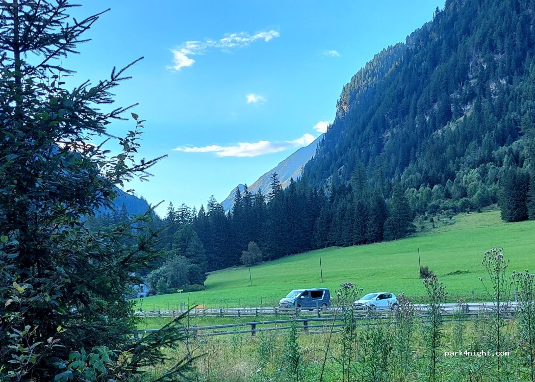 Very large hiker's car park far back in the Weisdpriachtal. Absolutely quiet at night, a lot of excursion traffic during the day.