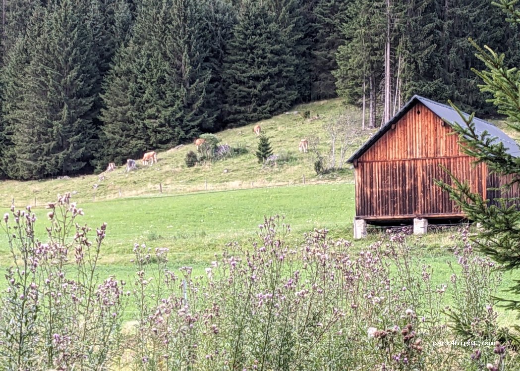 Stationnement autorisé pour la nuit, endroit calme avec très peu de circulation une fois les randonneurs et agriculteurs partis. Vous serez bercés par le bruit de l'eau qui coule en contrebas et les cloches des vaches qui sont en face du parking. Une belle étape pour passer la nuit.