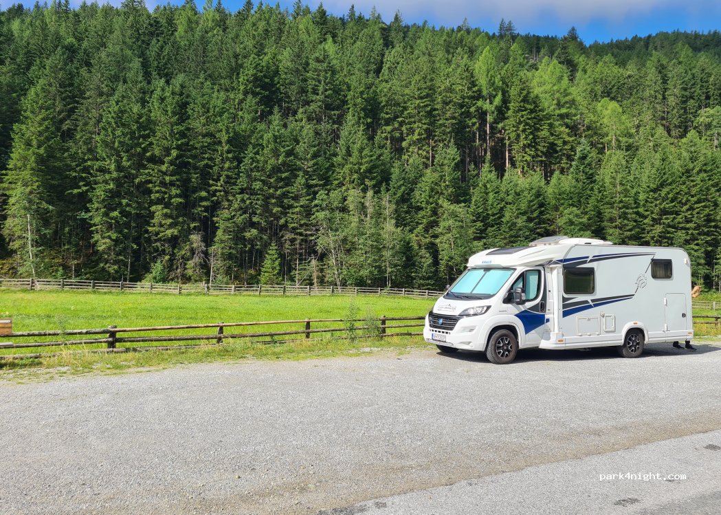 Sehr grosser Wandererparkplatz weit hinten im Weisdpriachtal. Nachts absolut ruhig, tagsüber viel Ausflugsverkehr.