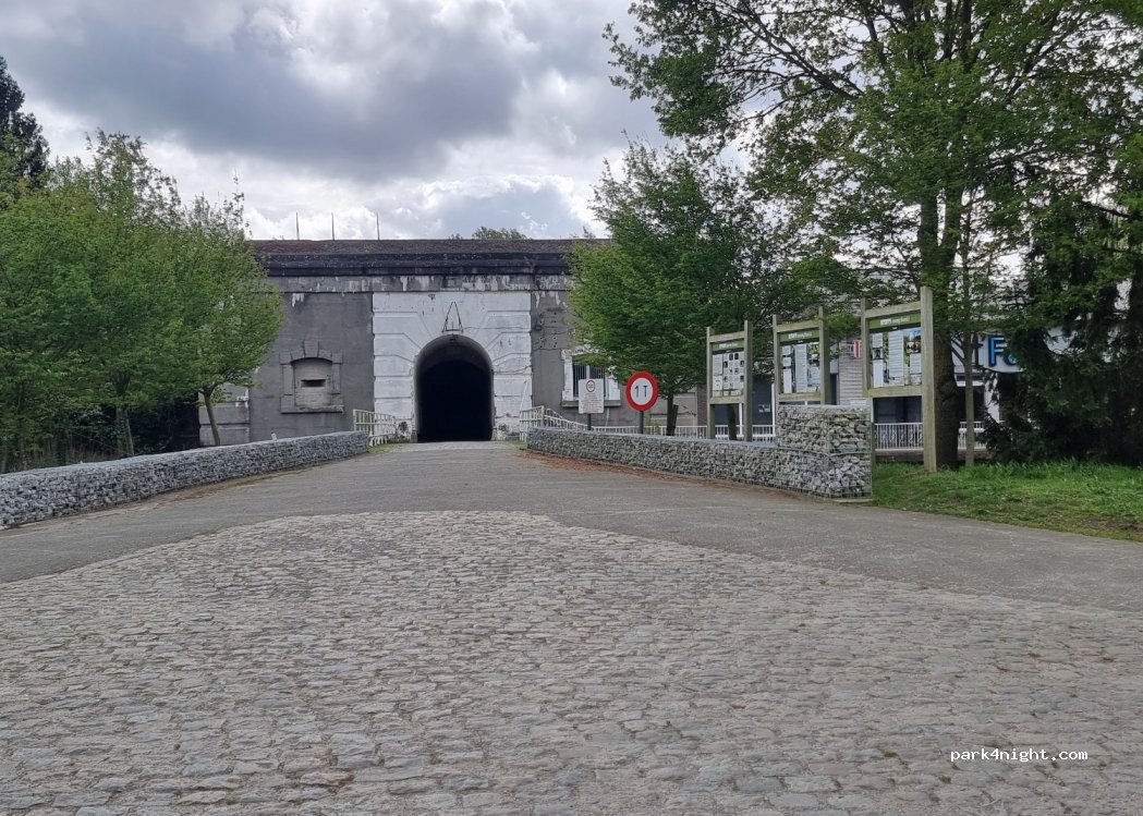 De aangeduide camper parking is rech tegenover de ingang van het Fort Koningshooikt. Heel rustig tijdens de week.