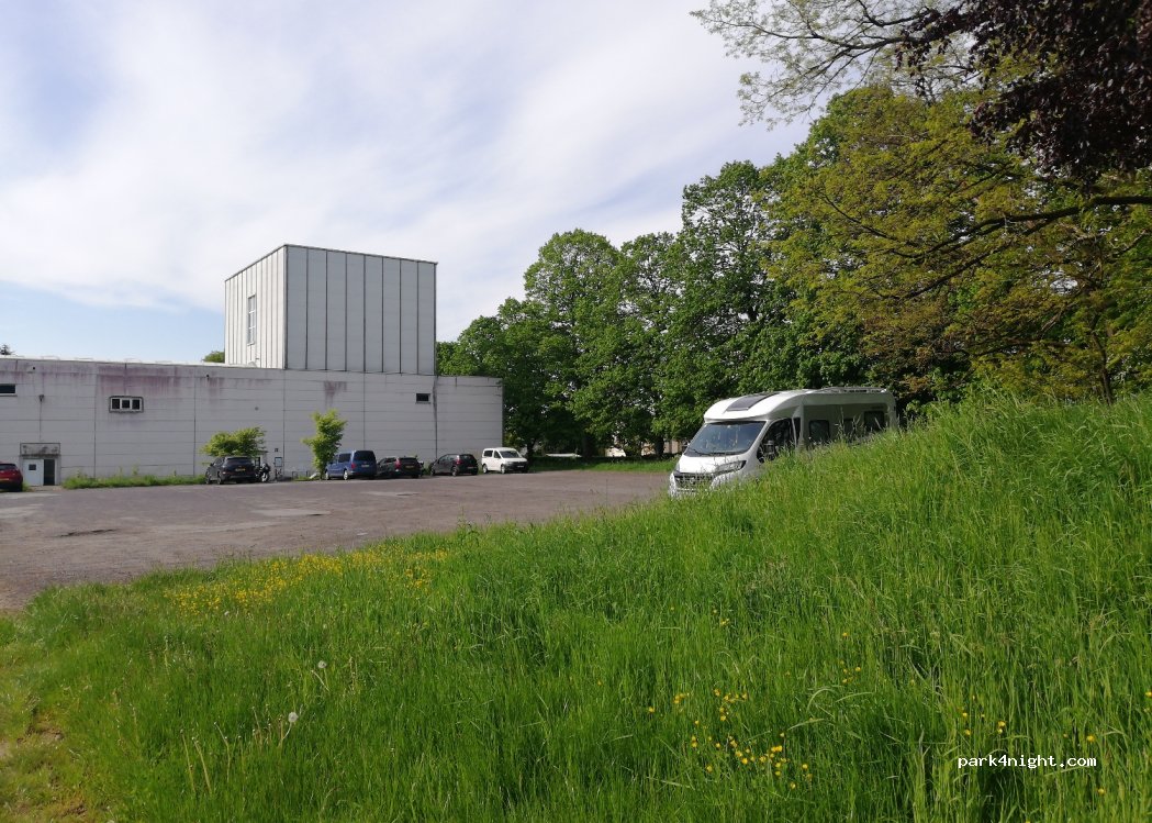 Grote rustige parking tussen klimhal en atletiekpiste. Perfect voor één nacht.