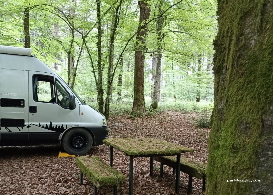 petite clairière pour une nuit près d'une table de pique-nique inutilisable !!! le lieu est calme en retrait de la route peu passante la nuit.