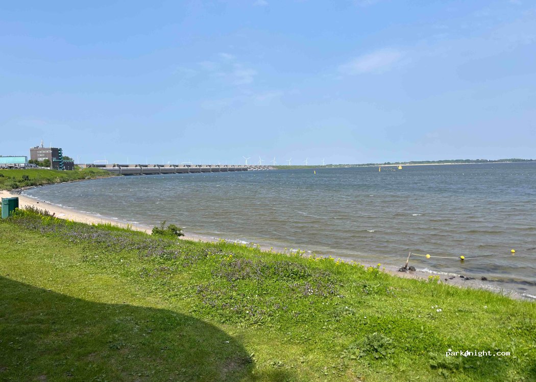 Endroit vert avec un chemin et deux/trois tables de pic-nic près d’une petite plage aménagée. Belle vue, coin calme et tranquille pour un arrêt et se poser une après-midi. Près du centre de sauvetage des phoques de Stellendam.