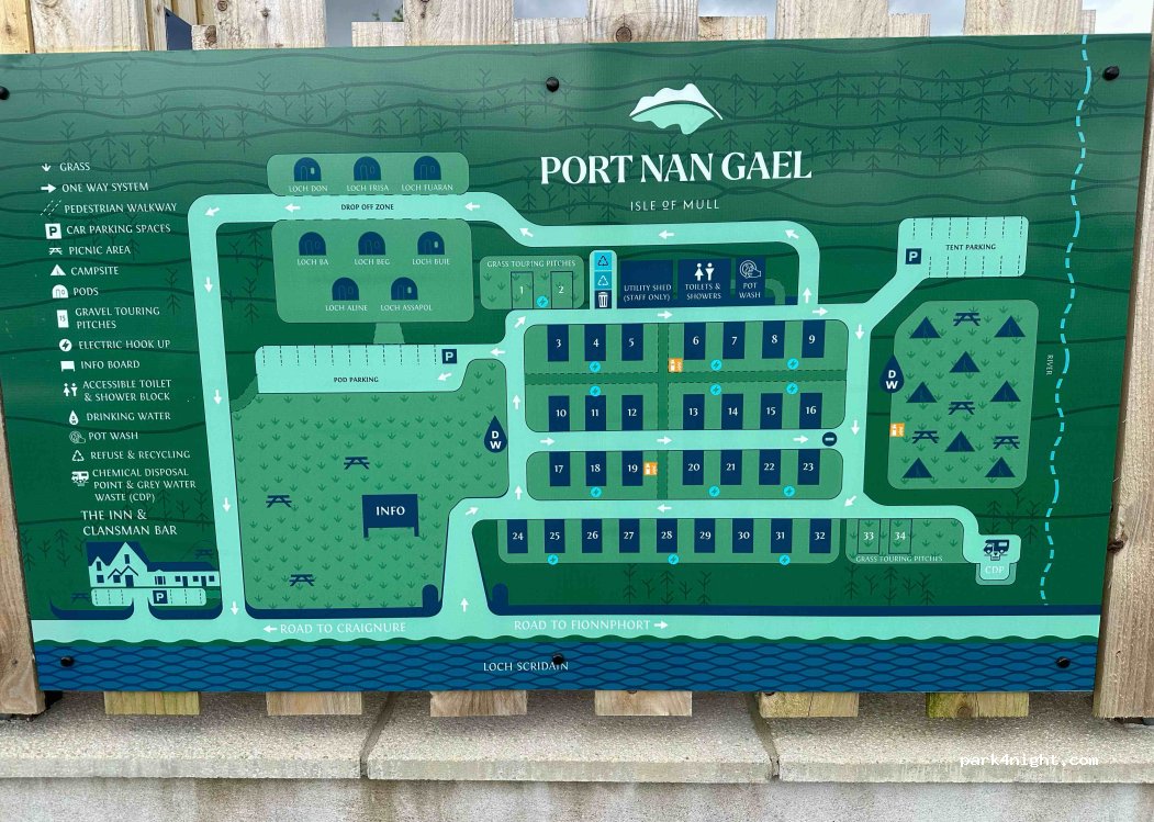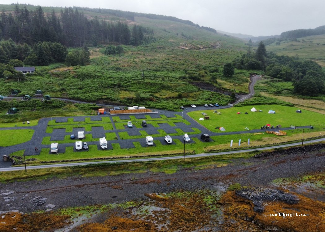 Great new campsite with hard standing pitches and wonderful views. Showers very good and toilet block nice and clean. £36.00 with EHU a night a little steep, but we stayed a couple of nights just to get our bearings on our first visit to Mull.