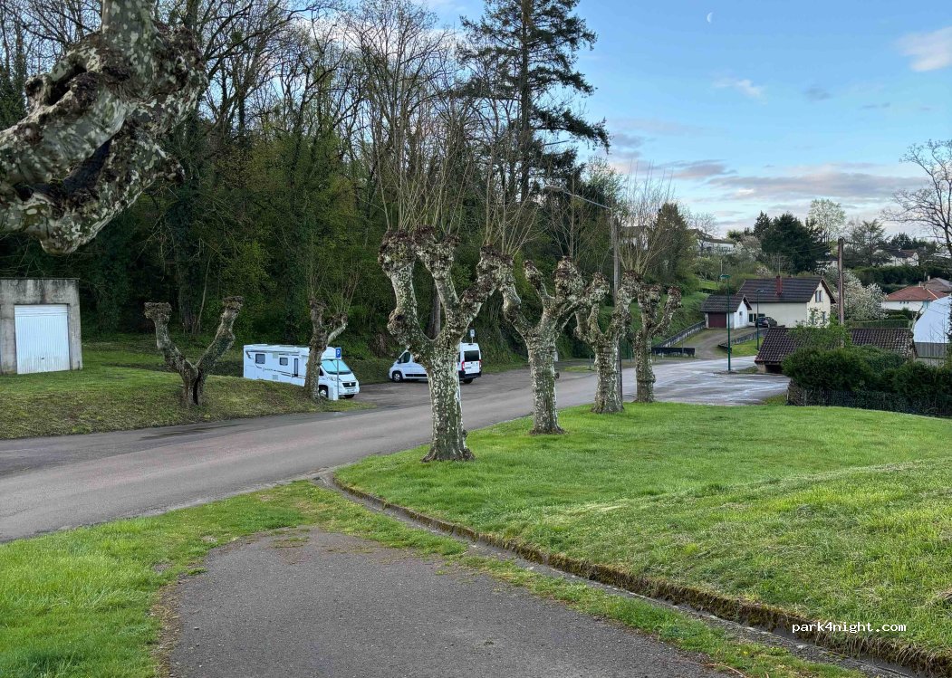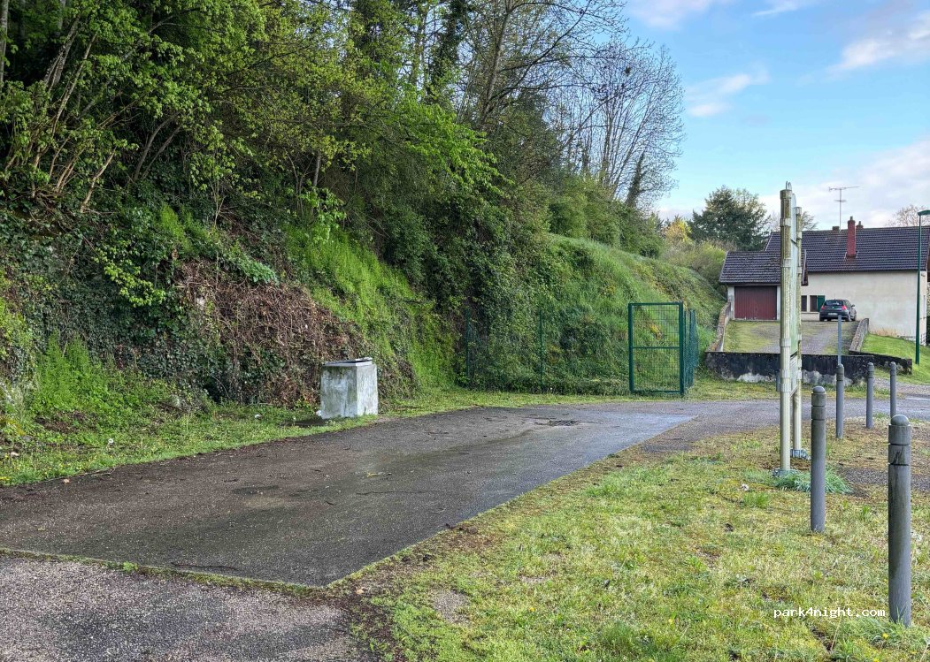 Endroit très calme pour passer la nuit. A 2 pas du terrain de sport et de la ligne de train qui passe très rarement donc pas dérangeant...