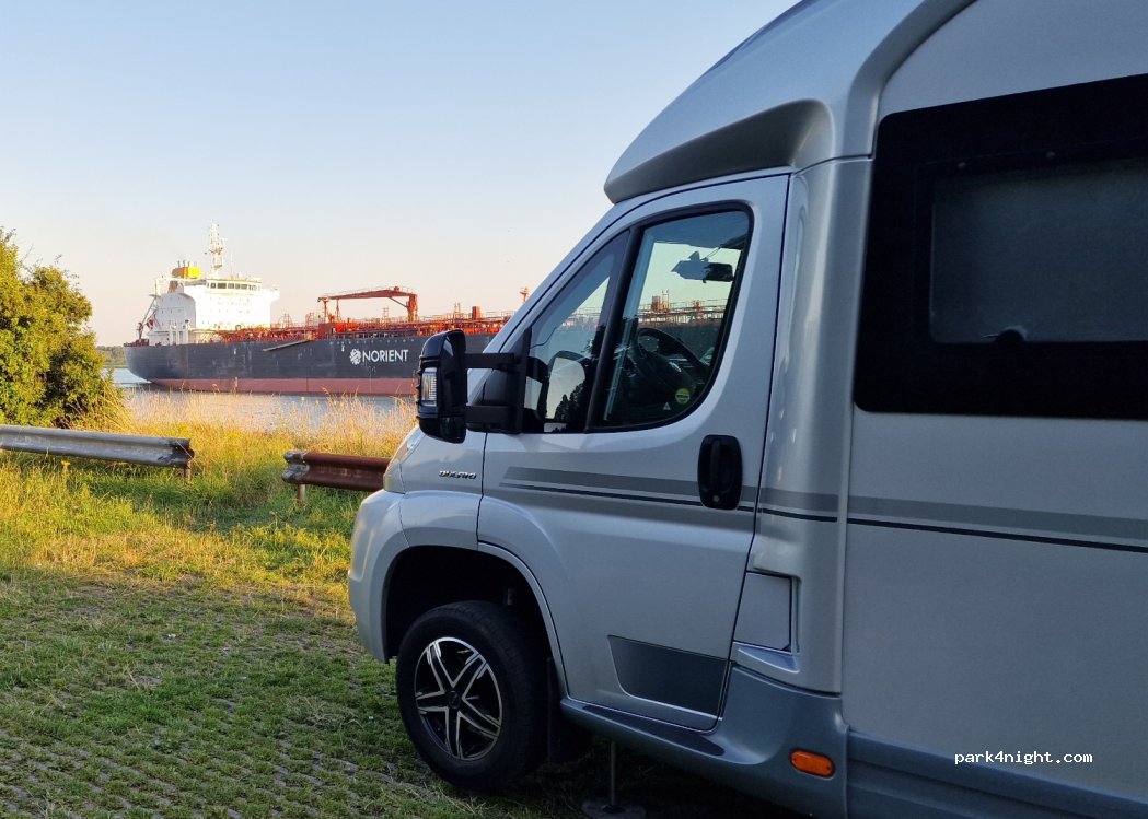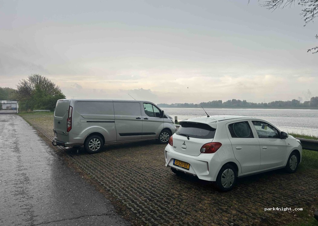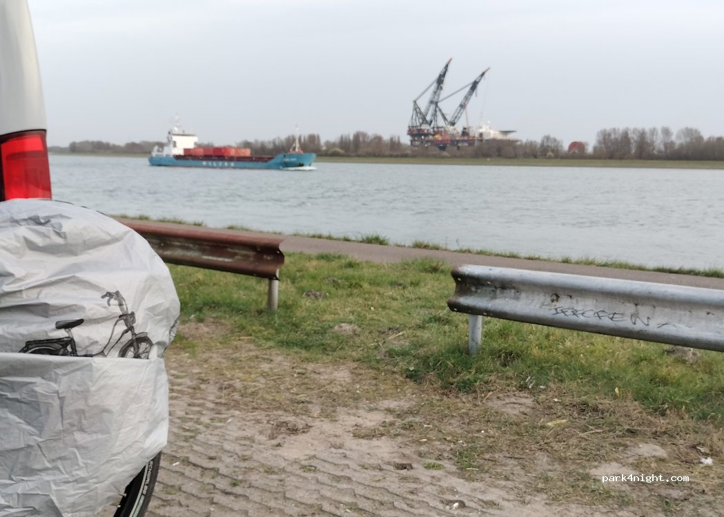 Nice parking lot next to the Maas. Many ships pass by and there is a busy cycle path, but you can enjoy watching boats!