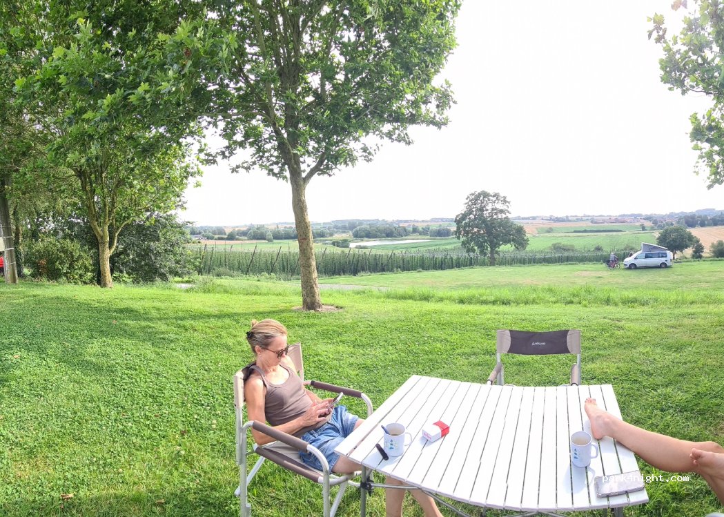 Mooie camping met prachtig uitzicht op de vallei. Wifi alleen op het zitje voor het sanitairgebouw. Ieper per fiets bereikbaar. redelijk horizontale plaatsen.