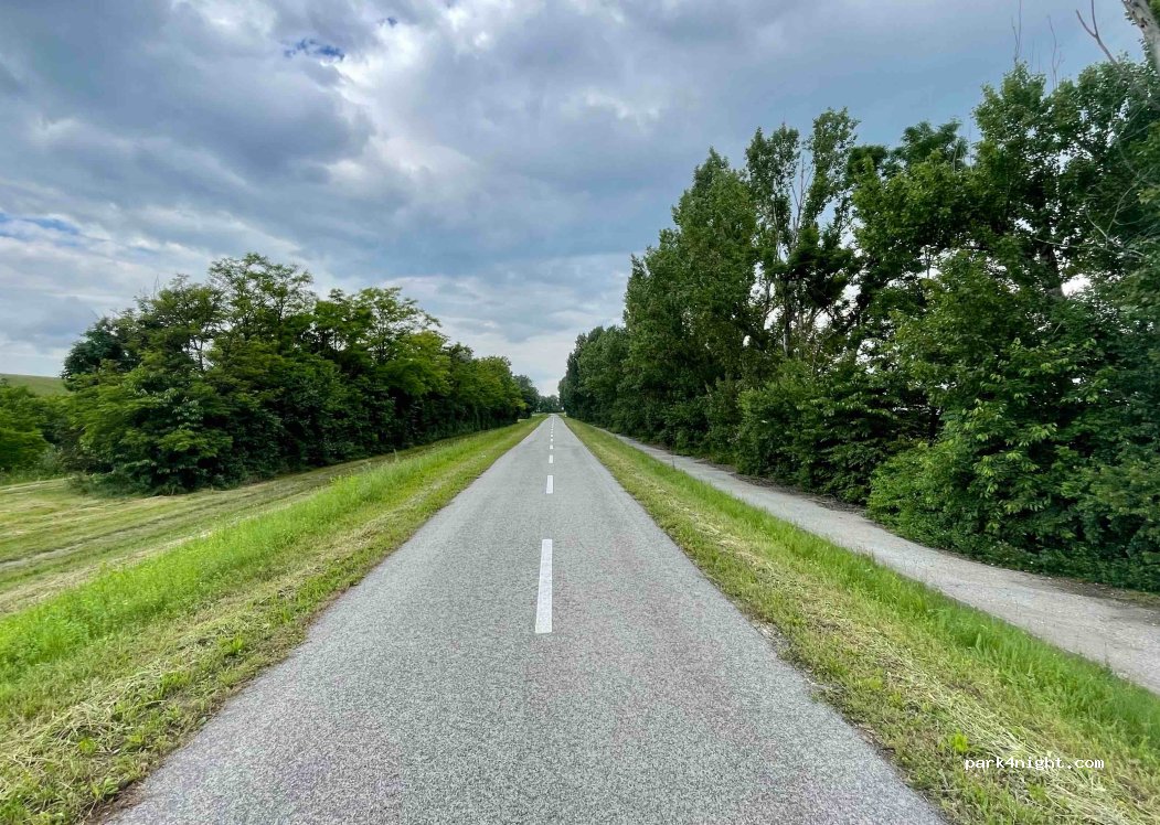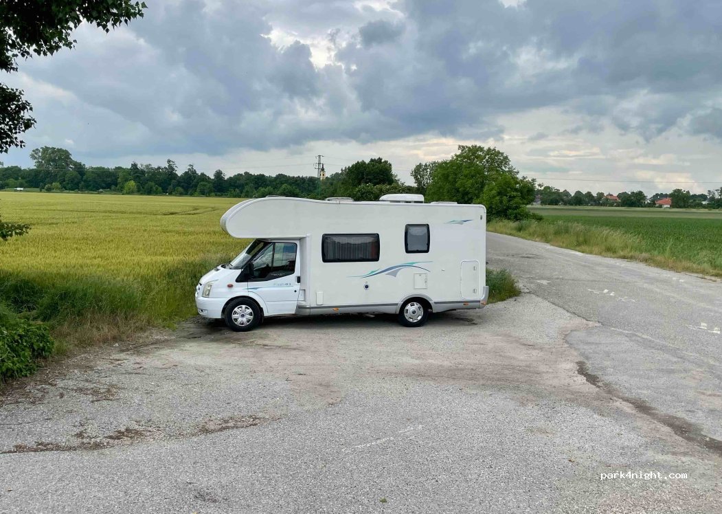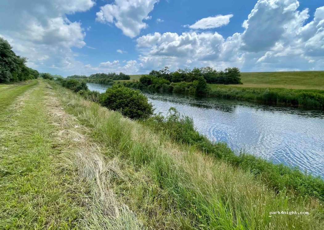 Place de parking pour max 2 camping-cars au bout de la route, à proximité de la rivière et du club de golf. Agréable pour faire du vélo ou promener le chien et aussi possible de faire du sup ou du kayak sur la rivière (petit canal du Danube). Veuillez vous arrêter avant le panneau indiquant la piste cyclable et vous y garer.