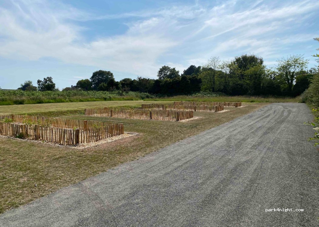 5 emplacements bien délimités par des végétaux. Endroit calme. Commerces à proximité. Pas de commodités. Merci à la commune pour la mise en place de cet espace.