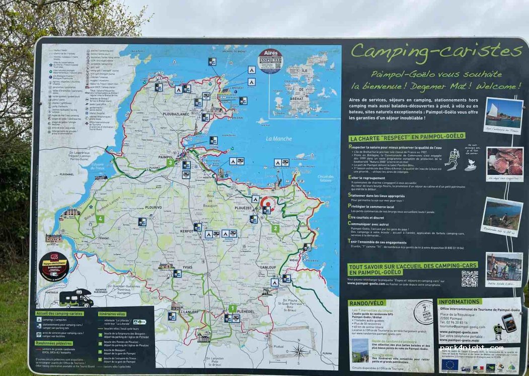Merci à la commune. Très beaux emplacements. Aucun service mais le calme pour la nuit. Joli moulin de Craca. Proche de commerces et de Paimpol.