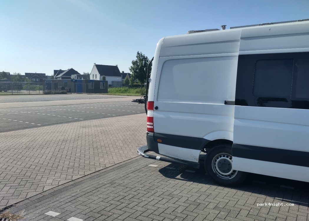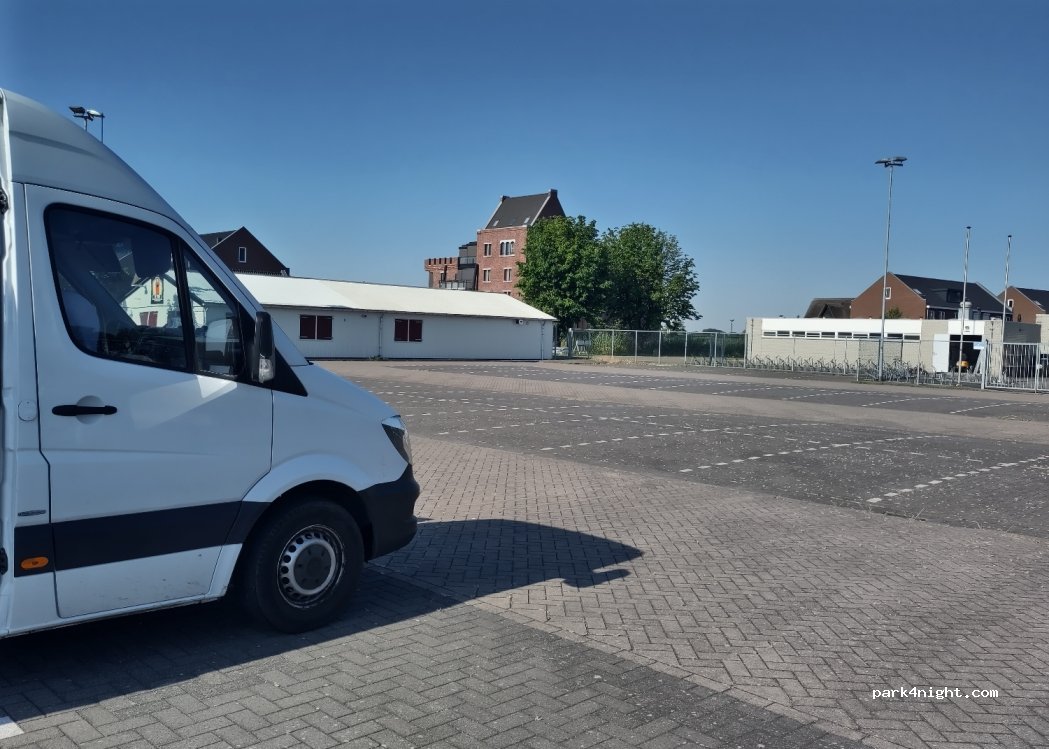 Grote parking voor gratis parkeren. Geen services. Vanaf 8u zijn er wel sportende kinderen rondom op de sportvelden, maar zijn niet storend