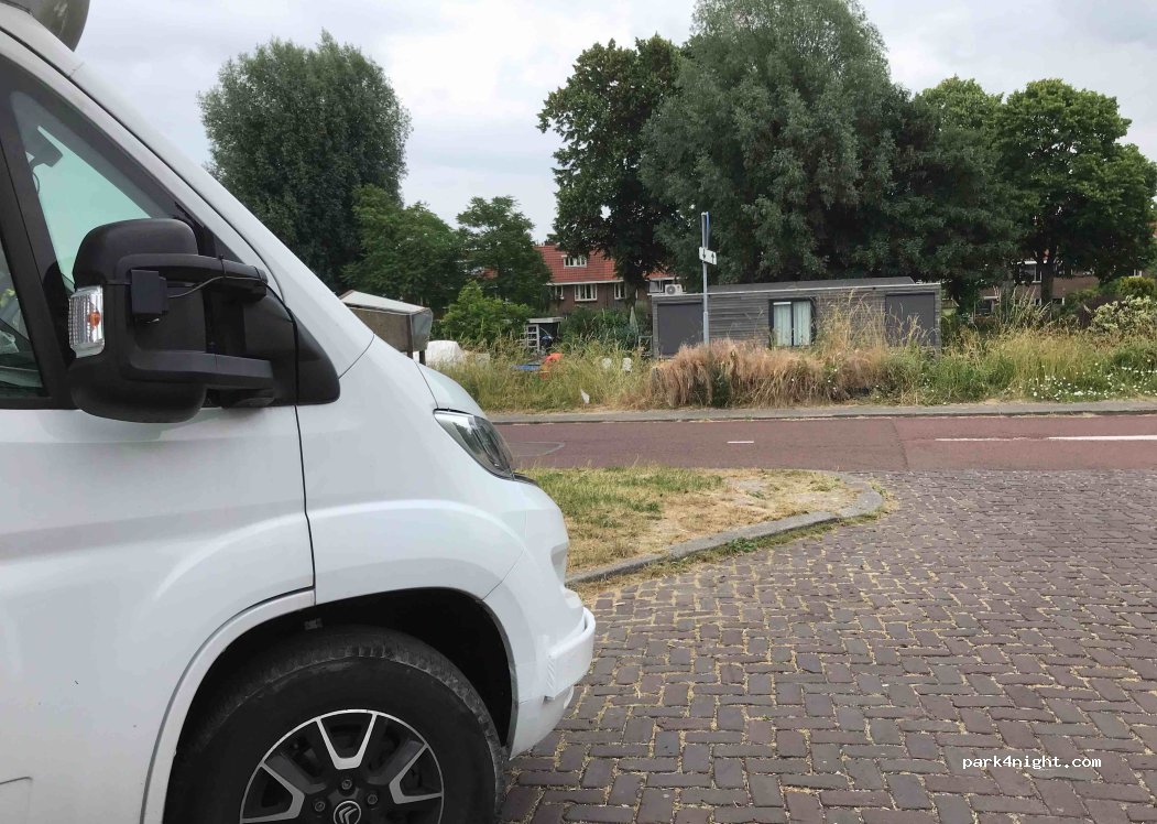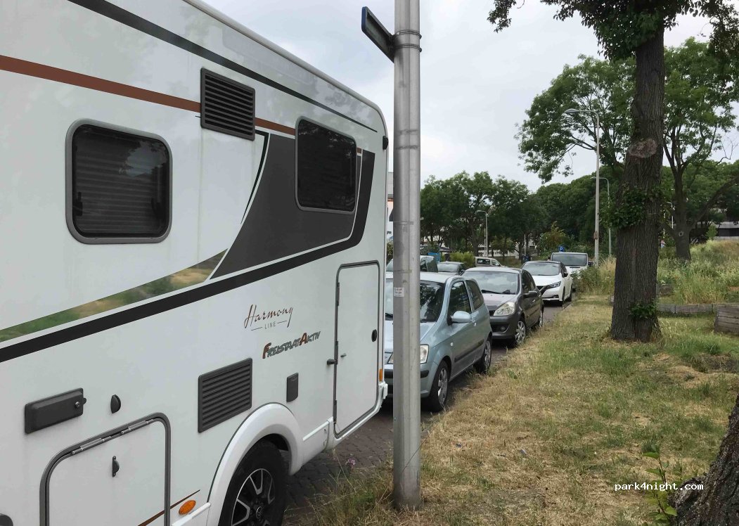 Free overnight parking spot along this street. Can be quite busy and noisy because of bicycles and walkers passing by all day and night. Ideal for those of us with diesel vehicles older than Euro5, who cannot enter the Low emissions zone (watch for the black and white signs; only in Dutch!). Center is only 10min with bicycle.