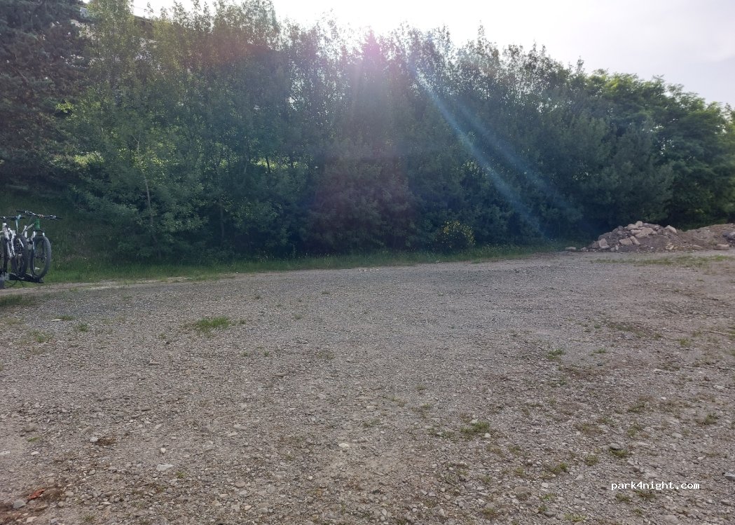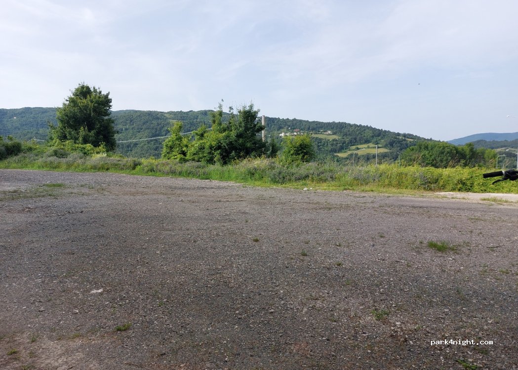 Einfacher Parkplatz (Schotter) etwas hinter einer Hecke, so dass man von der Straße aus nicht einsehen kann. Ansonsten ruhig, ein paar Hunde bellen in der Nähe, hat aber nicht gestört.