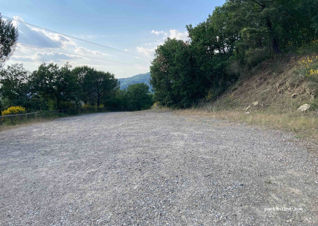 Ampio parcheggio in piena tranquillità. Meravigliosa vista su tutta la Valdichiana. Parco giochi e ristorante bagni pubblici e acqua potabile a 50 m
