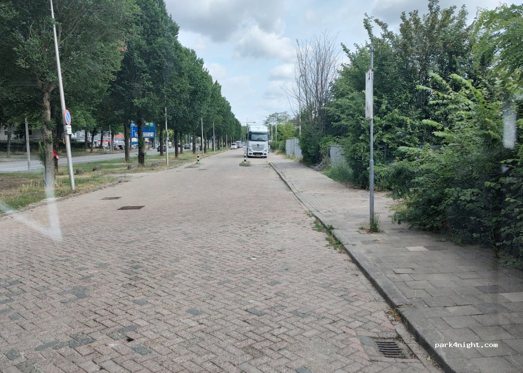 C'est une longue rue où il n'y a pas de restrictions de stationnement. Parking pour voitures normales, camions, remorques et mobile home.