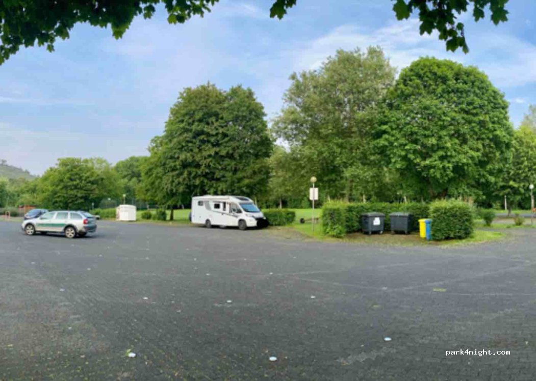Grosser befestigter Parkplatz an der Volkshalle.Keine Ver und Entsorgung,kein Strom. Kostenfrei,ruhig,nicht weit in den Ort.und zum Lahnfahradweg