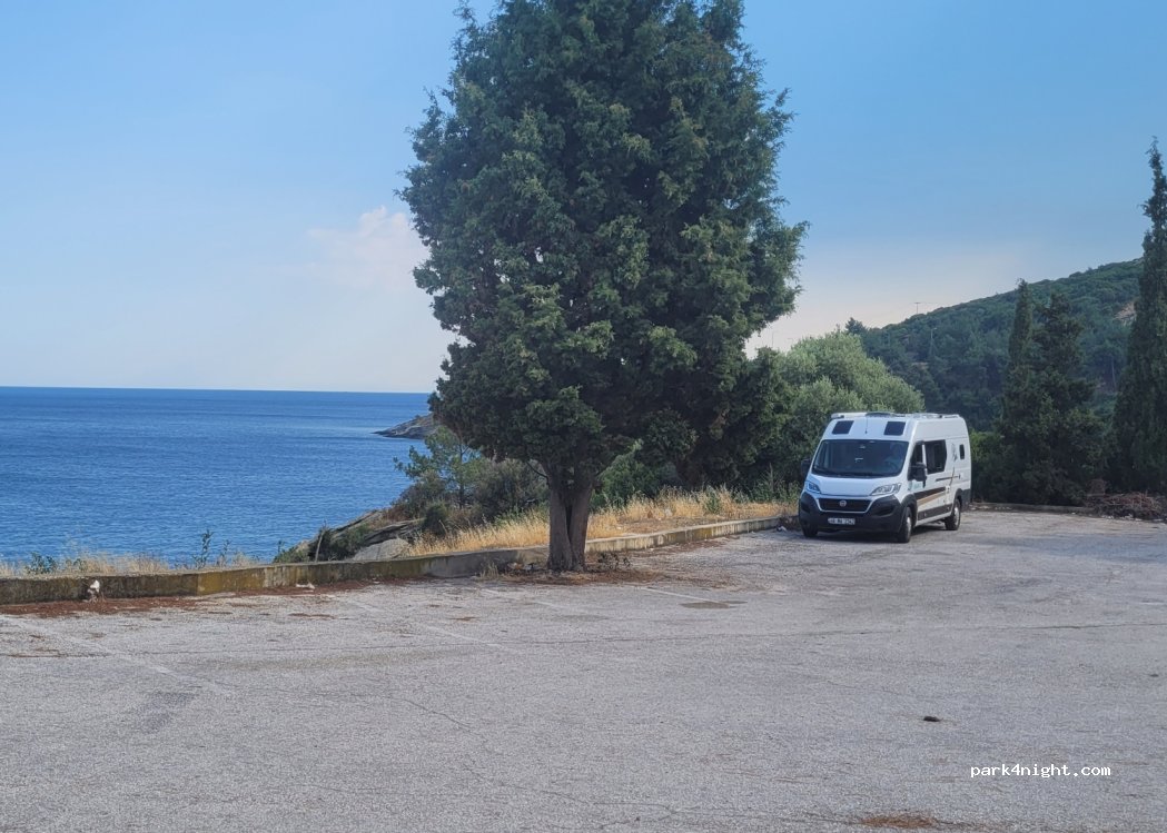 comodo parcheggio per passare la notte, a picco sul mare con una vista splendida. peccato per l immondizia. no servizi, la strada non c'è sembrata rumorosa.