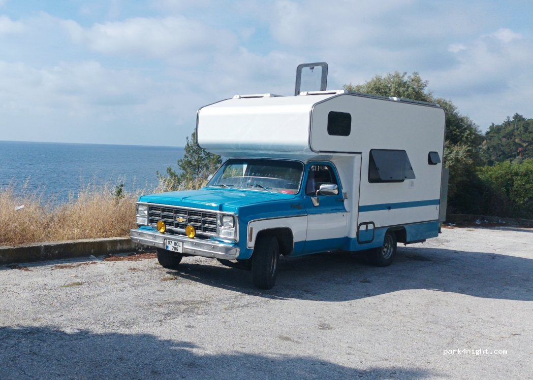 Aparcamiento grande con vistas al mar, hay basura al borde del acantilado, pero para una noche está bien, nuestra parte recogió una bolsa llena de basura porque hay 2 contenedores grandes cerca. Hay otro p4n a 130 metros a la vuelta de la esquina, pero eso fue peor para la basura, pero aún así es una buena parada.