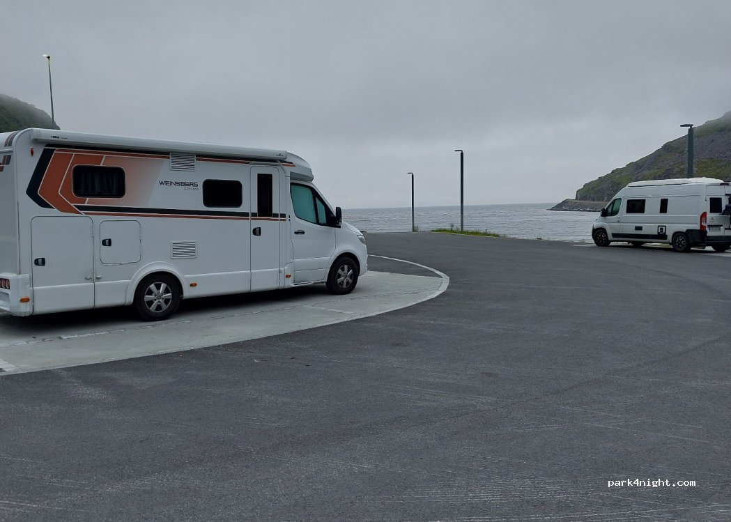Bon parking. Places espacées face à la mer pour 6 cc, avant d'arriver au Cap nord, pour une nuit au calme, des services gratuits( juste un bémol pour les eaux grises à verser au seau). Bon spot de pêche !