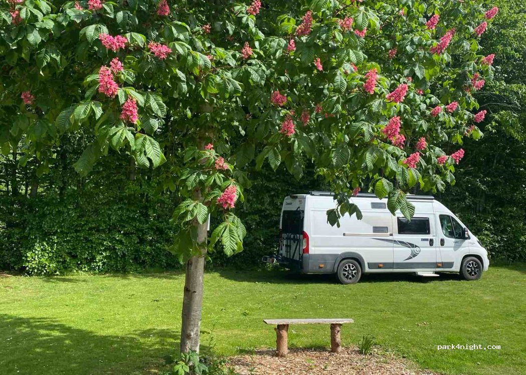 Ein schönes kleines Fleckchen Erde, man steht zwischen großen Buchen Hecken geschützt, die Straße ist zwar zu hören, aber der Verkehr hält sich in Grenzen. Alles ist sehr liebevoll eingerichtet und die Anmeldung absolut unkompliziert.(self Check in).