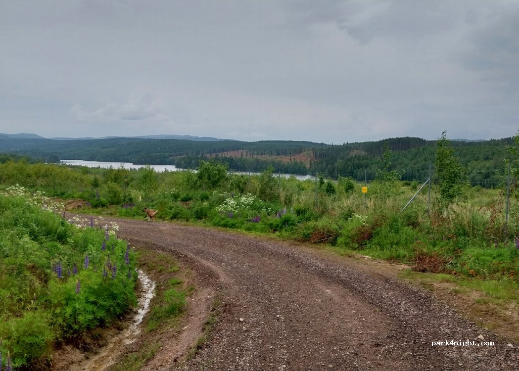 Een heerlijk plekje voor de nacht. De honden kunnen niet loslopen er komt met regelmaat een auto langs. Voor de wandeling, de weg iets verder doorlopen en bovenaan links staan de bordjes.