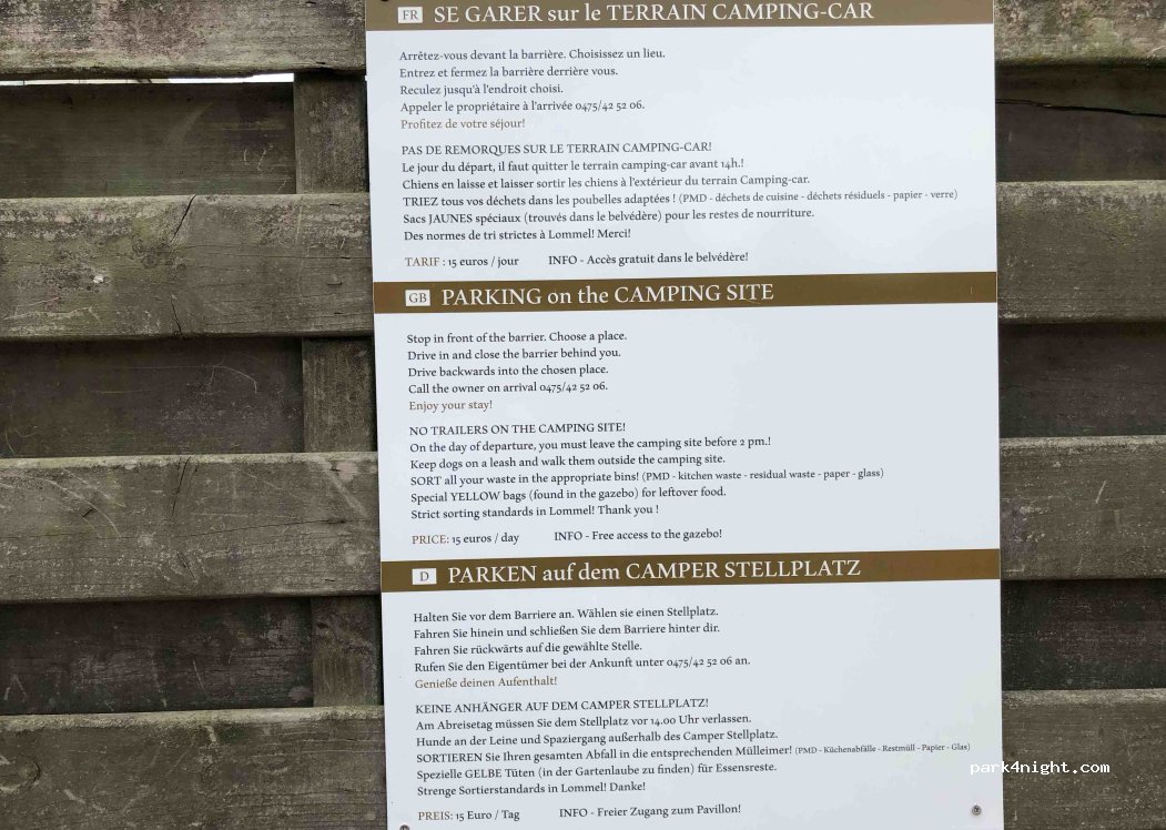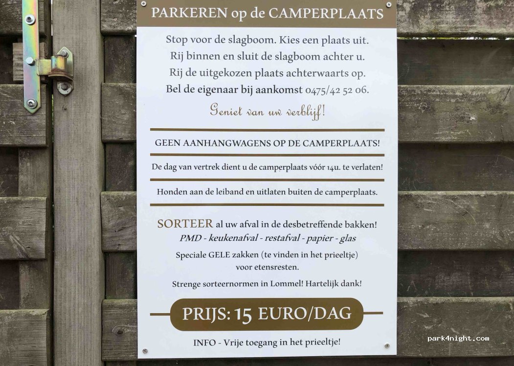 Vraiment une aire sympathique sur un petit terrain arboré. Tous services pour camping-caristes pour 15€ la nuit. très proche du centre de Lommel, il faut venir ici pour le vélo car tout est aménagé pour, impressionnant pour qqun qui vient de France.