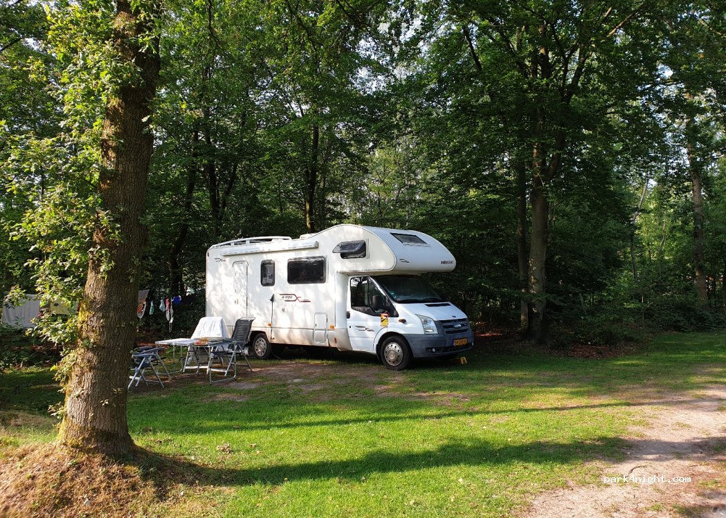 Camping in bos met enkele ruime full-service camperplaatsen. Soms wiggen nodig. Rustig, zelfs bij start van zomervakantie. M.n. voor kinderen erg leuke camping met verschillende buitenzwembaden en zowel binnen- als buitenspeeltuin. Mooie omgeving voor fietsen en wandelen. Sanitair wat verouderd, maar ruim en schoon. Vriendelijk personeel. Na 17.00 aankomen niet mogelijk, wellicht in overleg wel.