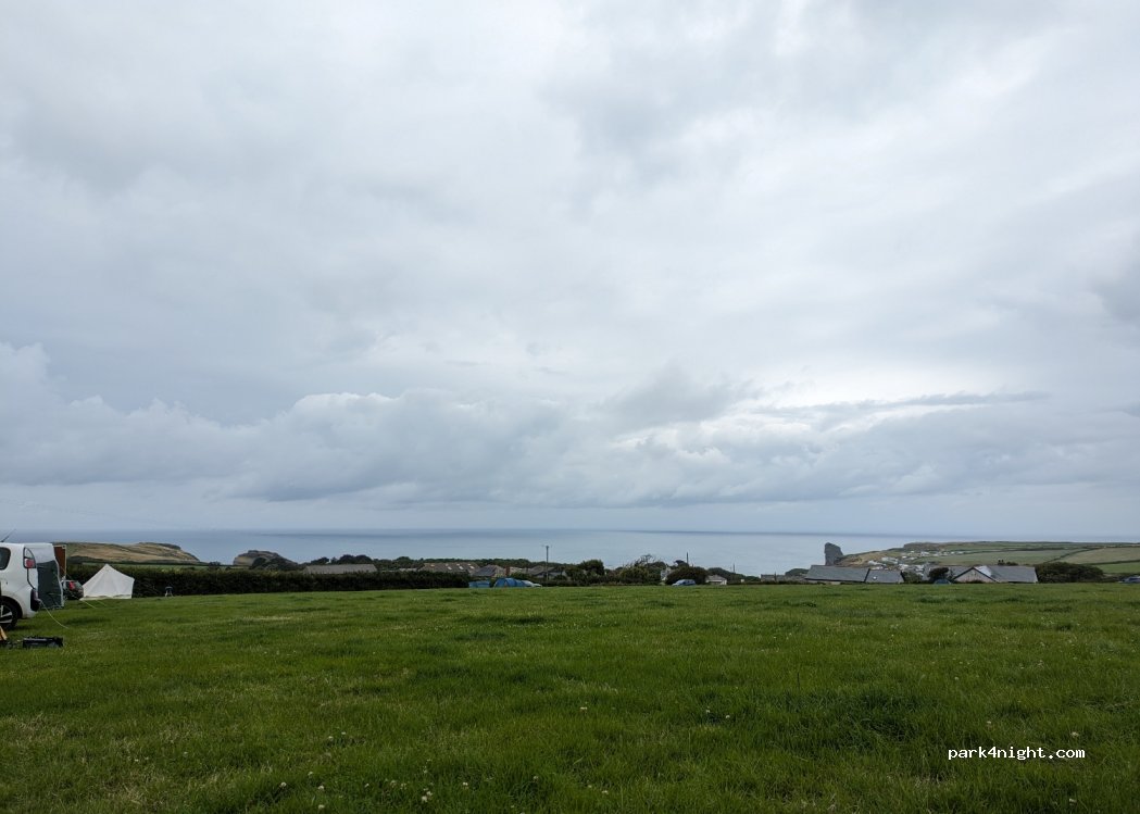 Nice campsite with views of the sea. Short walk into to the village through fields. Would stay again .