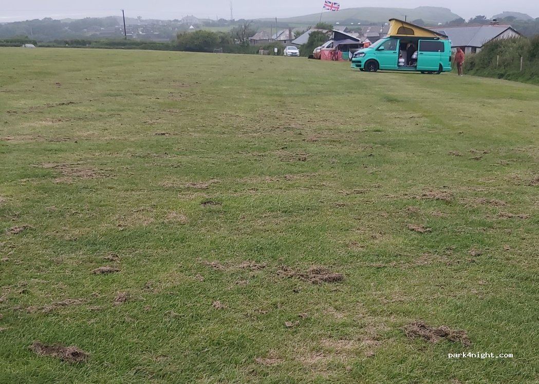 stayed here for one night, very laid back,park where u want , communal toilets and showers clean and tidy we only paid £15 for night . nice walk to coastal path . will stay again .