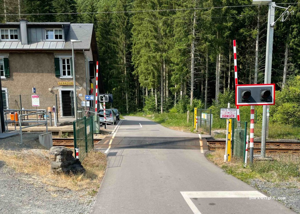 Petit endroit sympa et vraiment calme et avec très très peut de circulation que ça soit voiture vélos ou même randonneurs . Même si une ancienne gare reconvertie en lieu de camp s’y trouve le passage des trains n’est que peu fréquent et inexistant la nuit. Accès wifi gratuit via la station de l’ancienne gare qui est toujours active