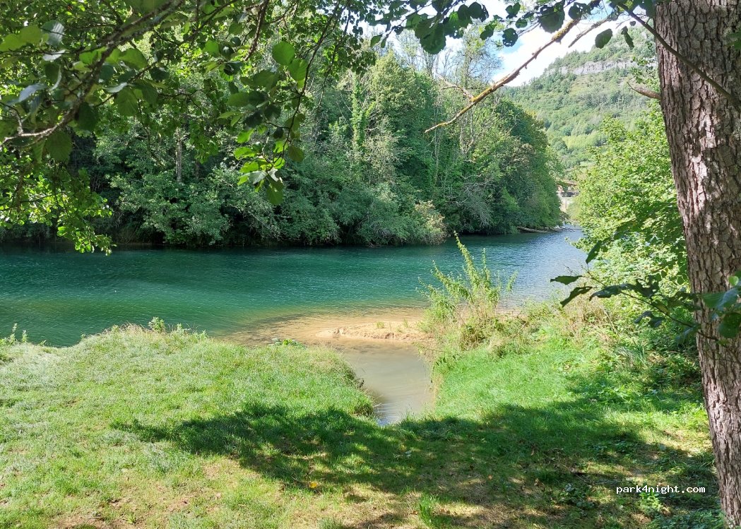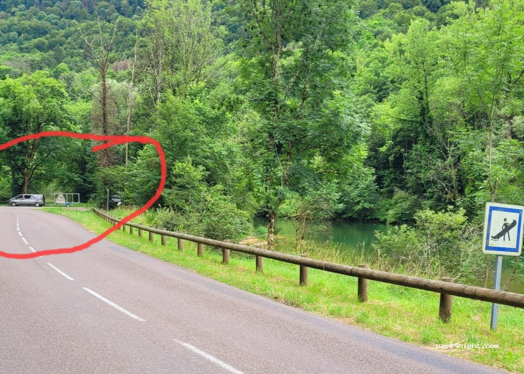 Rest area on the banks of the Loue. Along the main road. Swimming possible (it's cold!)