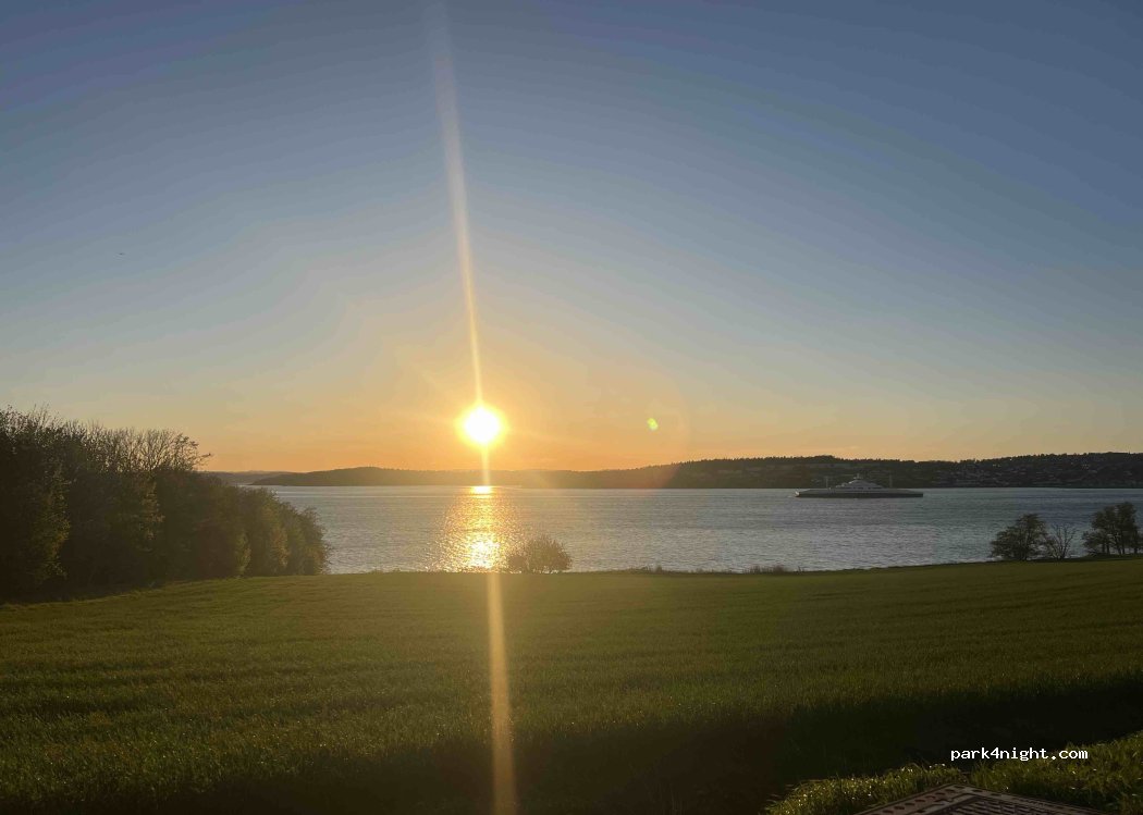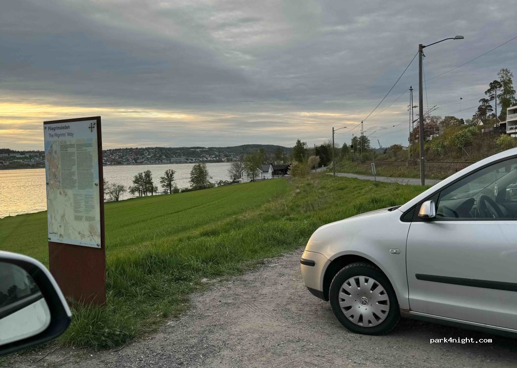 Petit parking avec vue sur le fjord. un train passe juste derrière donc vérifiez si c'est bruyant. quelques centaines de mètres au nord se trouve une plage très sympa , fréquenté jusqu'à tard car le soleil s'y couche. il est possible de se garer le long de la route, tjs avec vue ou alors dans la descente vers la plage, un van discret trouvera sont bonheur, mais c'est en pente. il y a des poubelles et des toilettes à la plage.