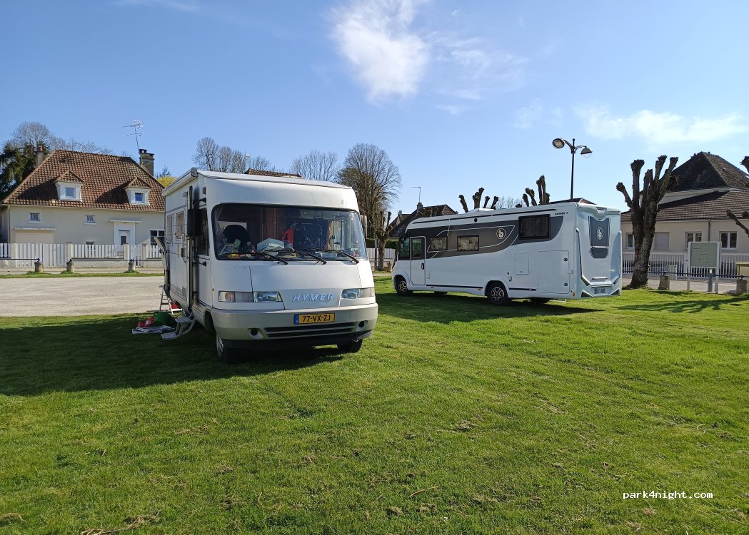 une aire très sympa, propre sur gazon. tous les services eaux gratuits ! merci à la commune. ,N'oubliez pas les commerçants du village . Nous avons apprécié la fromagerie Mussy en sortant du village, route de Tonnerre, pour son... Chaource bien sûr!